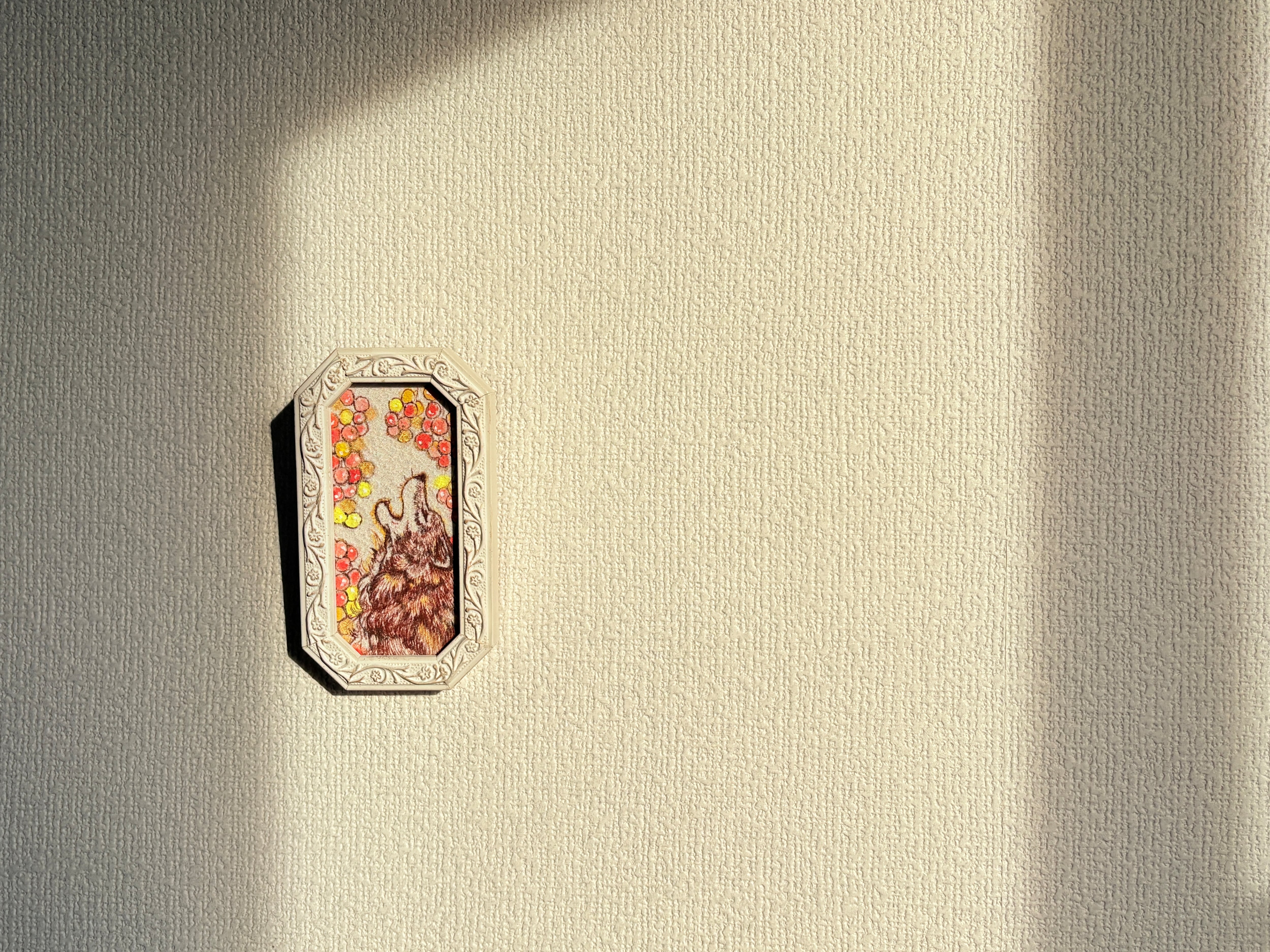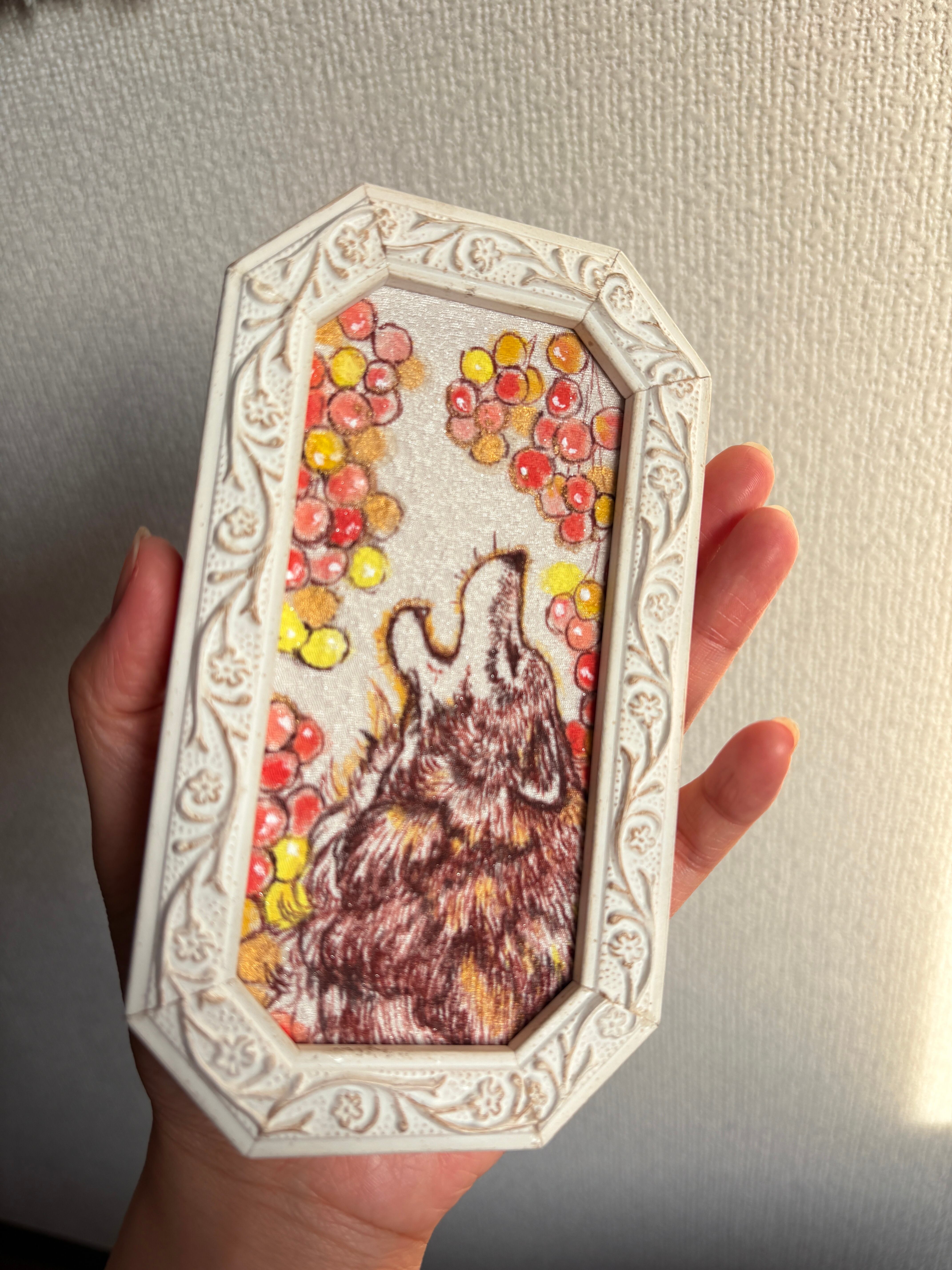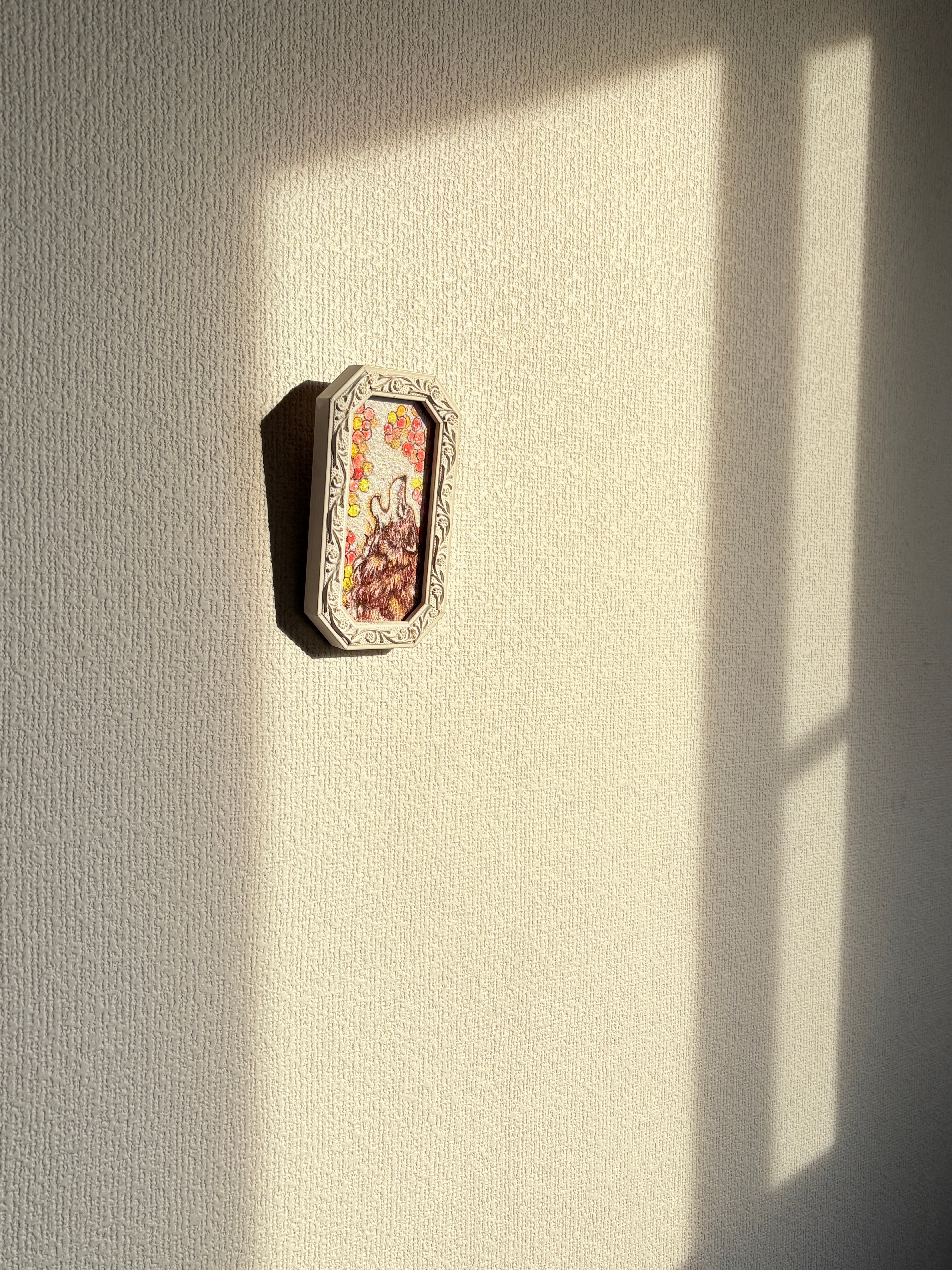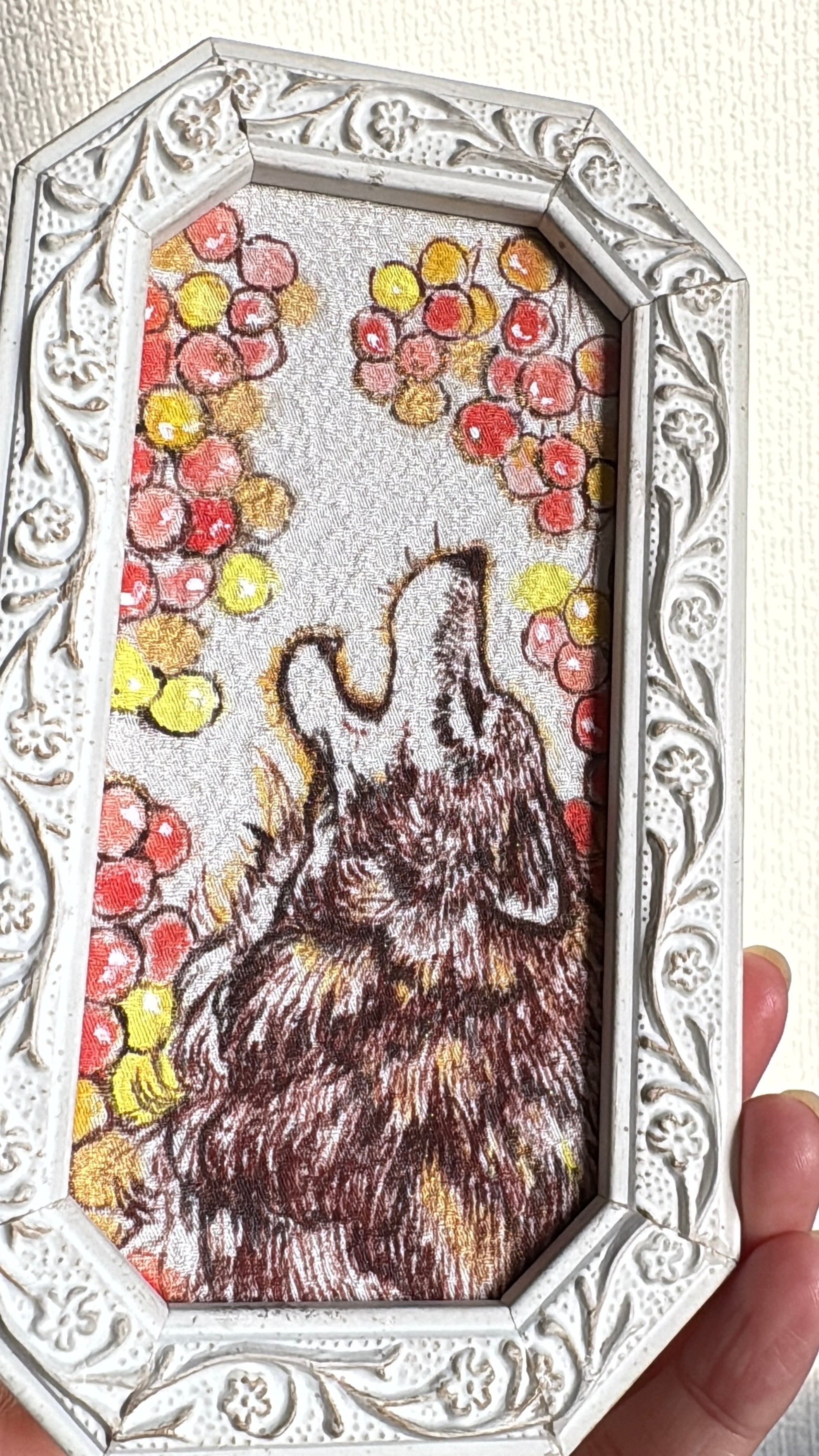 一点ものの額に額装しており、画鋲で壁掛けができる仕様になっておりますので開封後すぐ、ご自宅で飾ってお楽しみ頂けます。